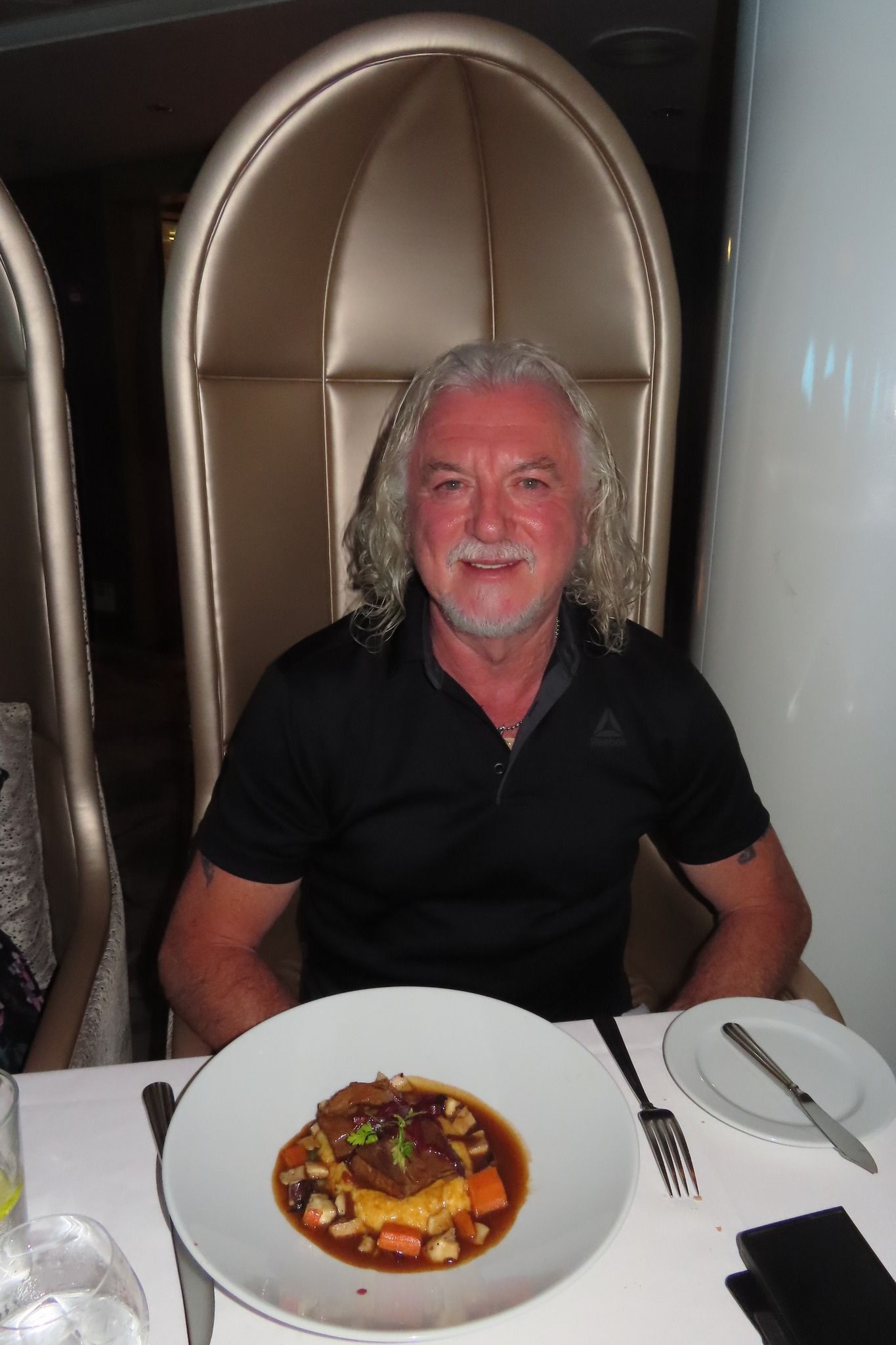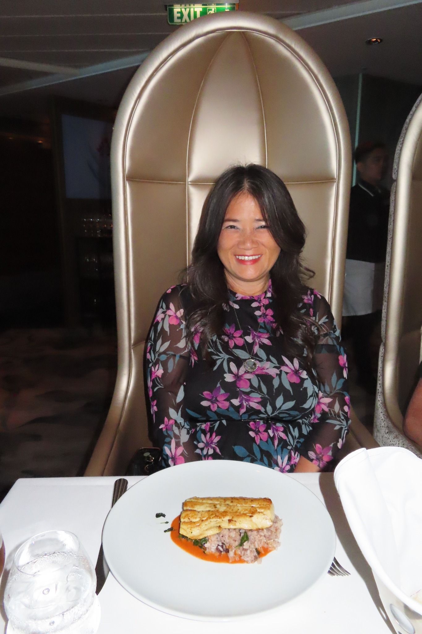 Dinner tonight was, of course, amazing — but that’s no surprise when you’re sailing with Celebrity Cruises. The food onboard is always top-notch, from beautifully plated appetizers to indulgent desserts. Normally, we don’t mind where we’re seated, but tonight I decided to switch things up and asked for a different table. A small change made a big difference — we ended up with these incredible high-backed chairs that made us feel like total royalty π. Sometimes it pays to just ask!