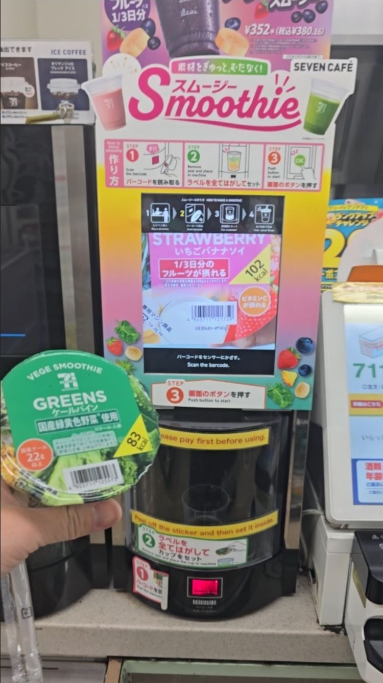 As someone who usually starts her mornings with a green smoothie back home, I was thrilled to discover that 7-Eleven in Japan actually offers fresh, make-it-yourself smoothies! ππ₯¬π