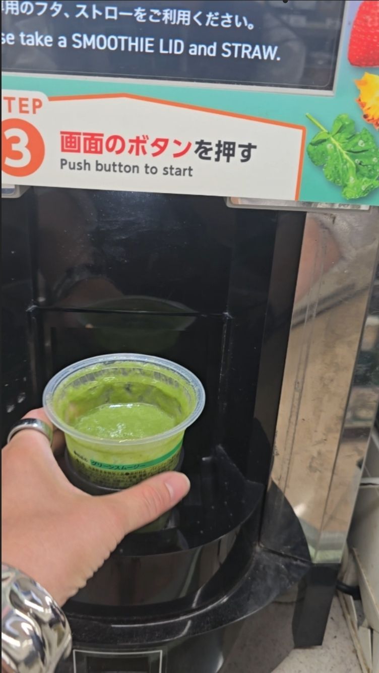 Watching it in action was oddly satisfying—and the smoothie? Delicious. Cold, refreshing, and a great way to get a healthy start in Tokyo. It honestly made me wish U.S. convenience stores had something like this.