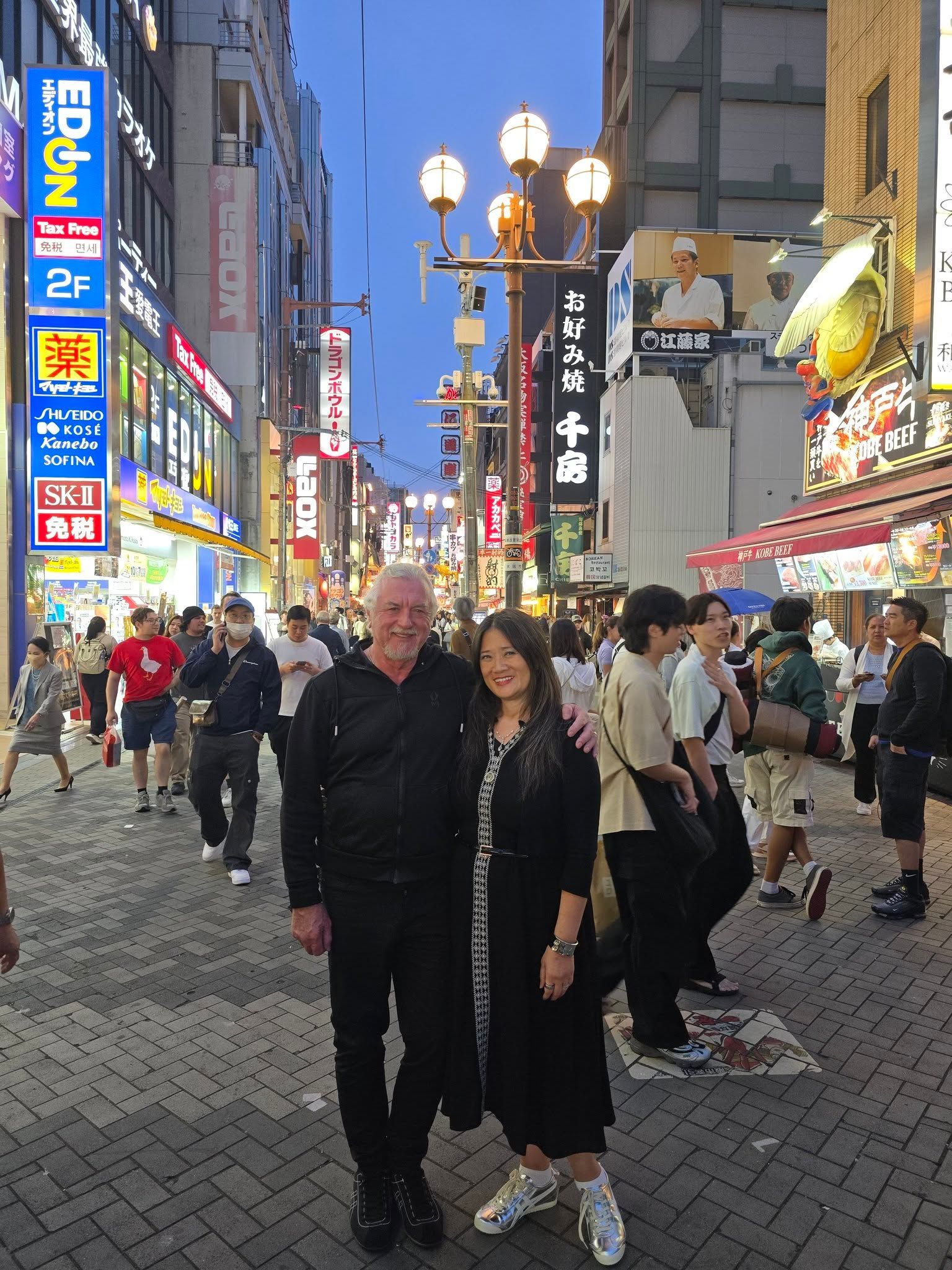 What made today extra special was sharing it with my daughter, who’s here in Japan working as a stitcher for Celebrity Cruises. β€οΈ We’re currently on a 12-Day Celebrity Cruise that starts in Japan and finishes in South Korea. Osaka is the only port with an overnight stay, which gave us the chance to really immerse ourselves in the city — from learning ninja skills, to shopping for Onitsuka Tigers, to eating way too much takoyaki, and now, ending the night with the Wolf Man himself.